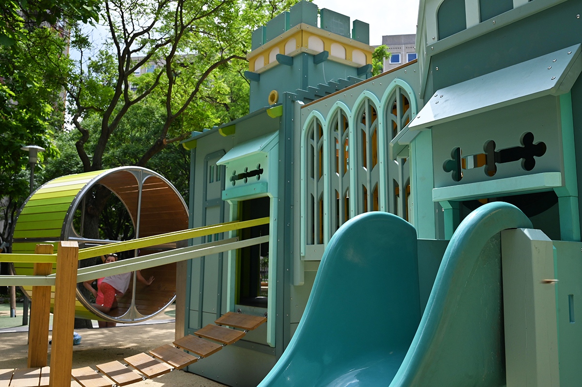 A játszótér északi területe a nagyobb – 3 évnél idősebb – korosztály számára készült. Ennek megfelelően a nagyobb, komplexebb eszközök az északi részen találhatók, úgy mint izgalmas középkori vár, őrtorony mászóka, körhinta, lapülőkés hinták, az áthelyezett trambulin és a forgó hordó.