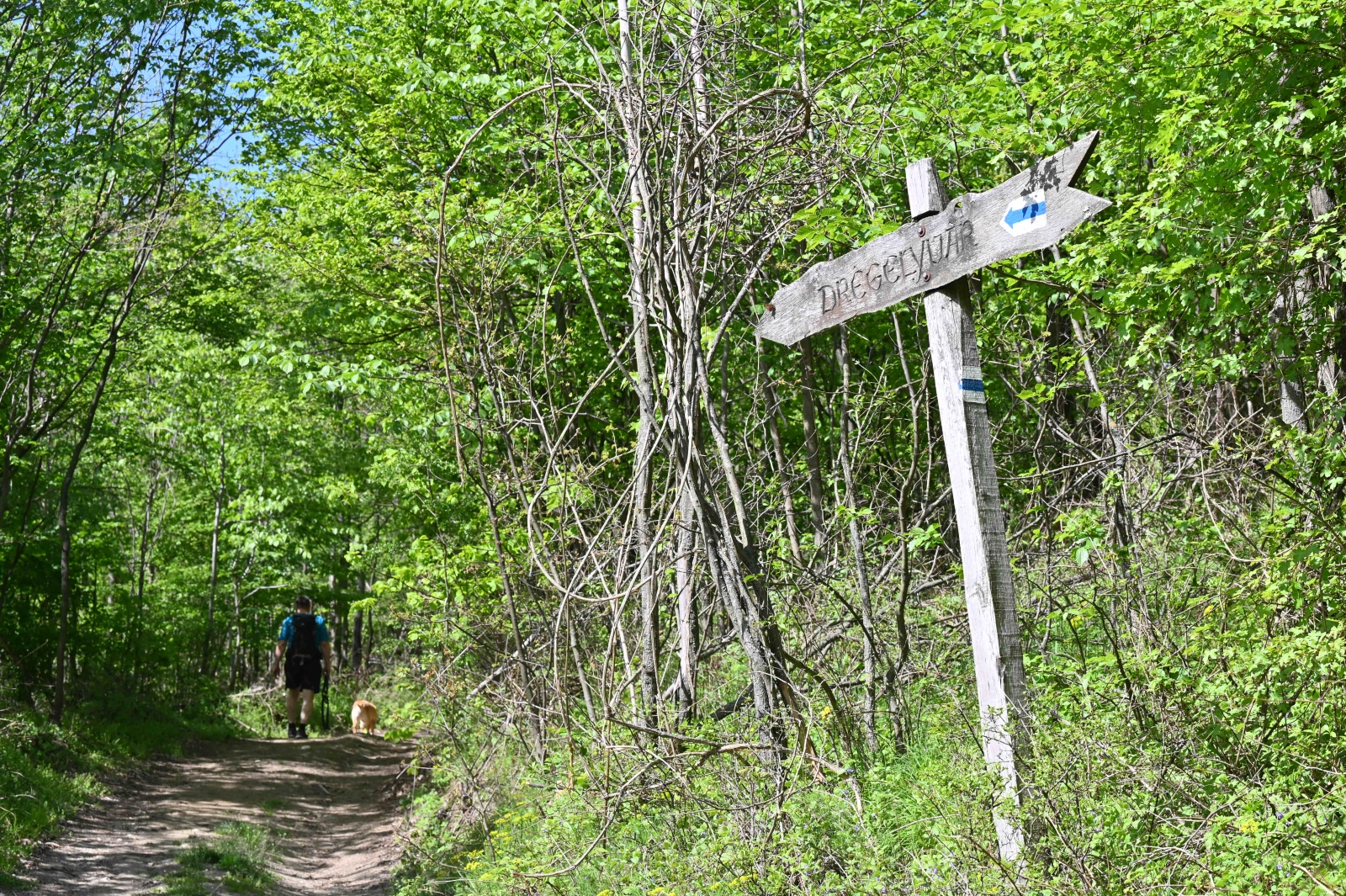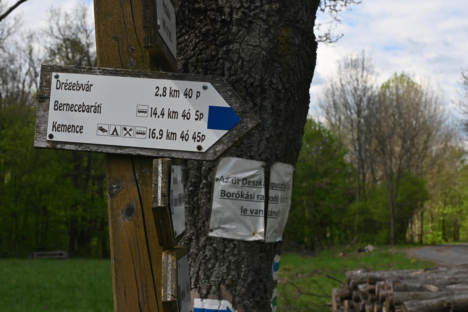 Pénzásás pihenőhelytől kék jelzést követve, még 2,8 km-t kell gyalogolni, de innentől már földúton.