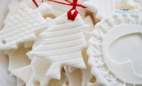 Szódabikarbóna, búzakeményítő és víz felhasználásával egyedi karácsonyfa díszeket készíthetünk. Ha foszforeszkáló pigmentport vagy homokot keverünk a masszába, a díszek sötétben világítanak, ha néhány csepp illóolajat is keverünk hozzá, illatos díszeket kapunk. A még puha masszát pecséttel, csipkével vagy növényekkel mintázhatjuk,írja az eletszepitok.hu
