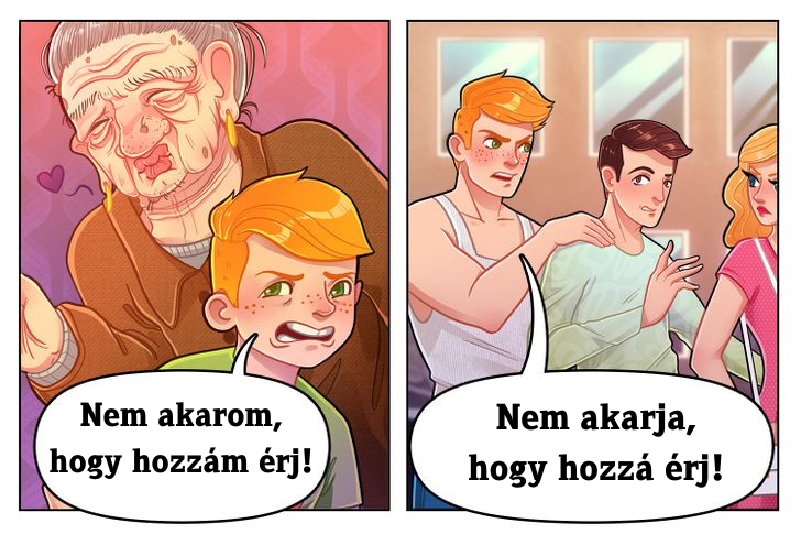 Már korán érdemes az emberi testet megmutatni és beszélni is arról fiaddal. Ahogy arról is, hogy joga van eldönteni, ki érintheti meg az ő testét, és ugyanez vonatkozik más emberekre is. Amikor idősebb lesz, magyarázd el neki, hogy a nem kívánt vagy nem megfelelő megjegyzések és viccek - mind a lányokkal, mind a fiúkkal szemben – nem helyénvalóak. Az is fontos téma lehet, hogyan érdemes beszélgetni szerelmi csalódásokról, és felhívhatod rá a figyelmét, közösen modellezhetitek, hogyan néz ki egy egészséges (pár)kapcsolat.