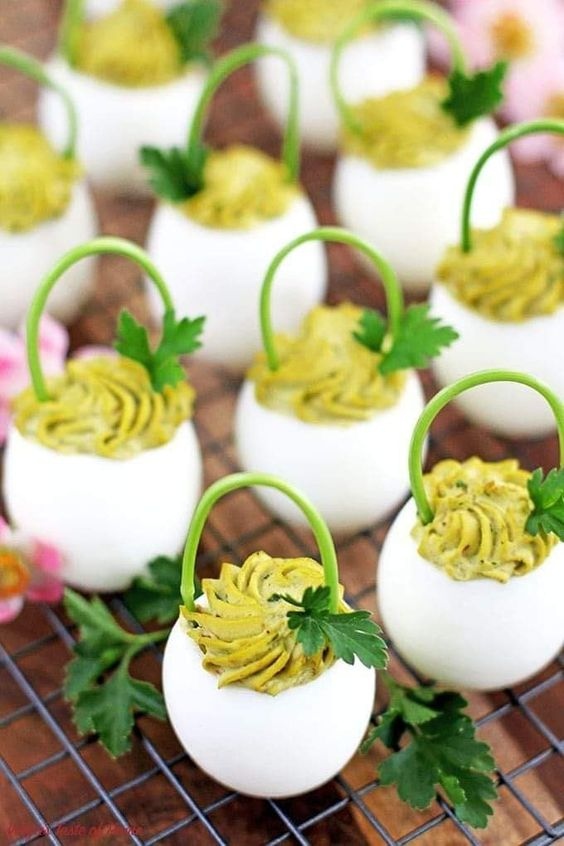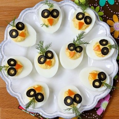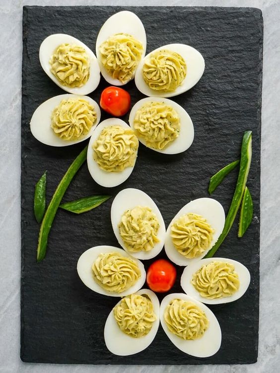 A keményre főtt tojásokat bármilyen finom töltelékkel meg lehet tölteni (metélőhagymás tojáskrémmel, almás franciasalátával, medvehagymás sonkakrémmel, kaviáros mascarponeval, stb.). És, hogy ne csak finom legyen a hidegtál, hanem látványos is, érdemes egy kis dekor ötlettel feldobni.