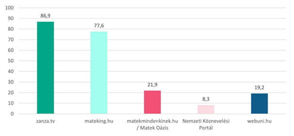Az előző kérdésünkre építve arra is kíváncsiak voltunk, hogy milyen platformokról, online forrásokról hallottak már a megkérdezettek. A zanza.tv és a mateking.hu weboldalakról hallottak a legtöbben, de a matekmindenkinek.hu és a webuni.hu weboldalak sem ismeretlenek a válaszadók körülbelül ötödének körében. A Nemzeti Köznevelési Portálról hallottak a legkevesebben – a válaszadók mindössze 8 százaléka ismeri ezt a platformot.