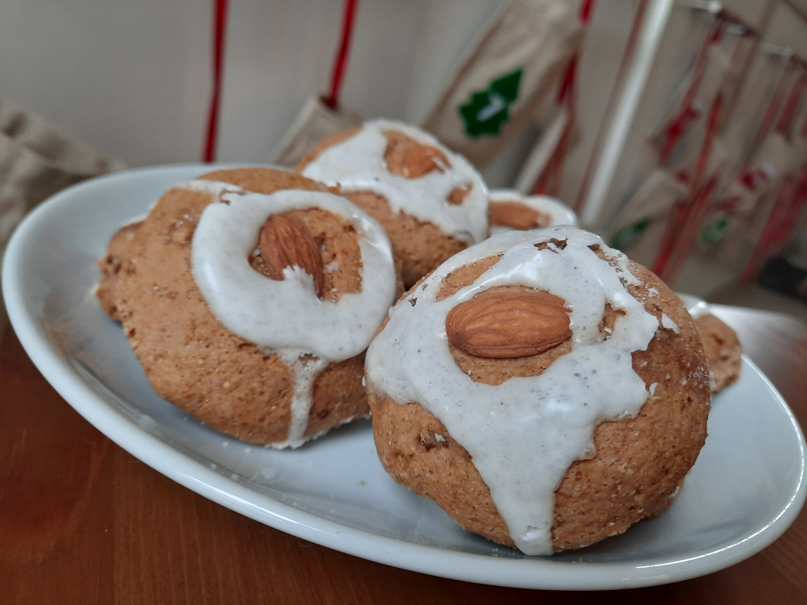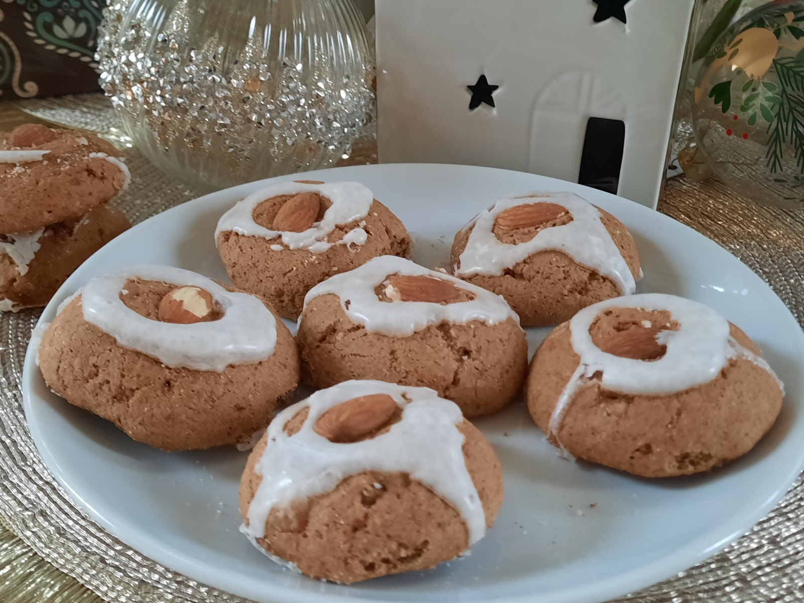 4. Hagyjuk kihűlni, ezután jöhet rá a csillogóan fehér díszítés. Máz elkészítése: Fehérjét verjük nagyon kemény habbá - apránként adagoljuk hozzá a porcukrot, hogy jó sűrű masszát kapjunk - végezetül tehetünk bele pár csepp citromlevet, de ez el is hagyható.