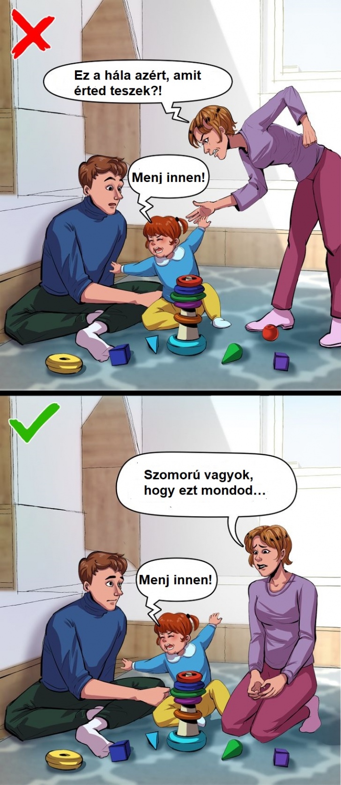 Bármennyire is szeretnél engedni gyermeked szeszélyeinek, hogy jobban kedveljen, fontos a határok meghúzása. Ellenkező esetben gyermeked megtanul manipulálni. És az is fontos, hogy nem te vagy az egyetlen, aki nemet mond neki és néha szigorú vele, hanem a párod is.