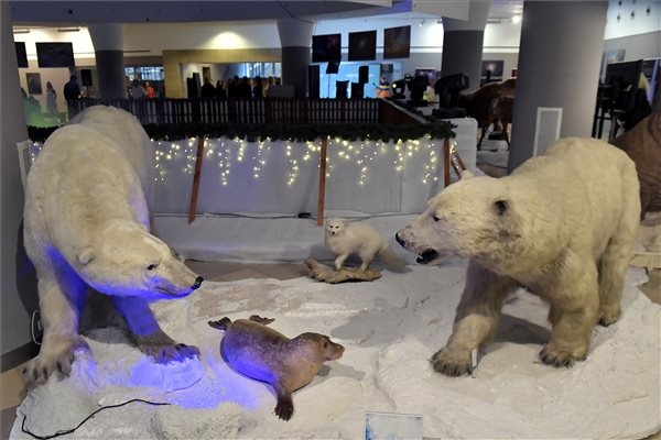 Az Északi-sarkvidéken, a tundrán és az Antarktiszon élő, veszélyeztetett állatok preparátumai, valamint a legutolsó jégkorszakban élt állatok rekonstrukciói láthatók a Magyar Természettudományi Múzeum pénteken megnyílt új kiállításán, amellyel egy időben egy beltéri, plasztik korcsolyapályát is átadtak a gyerekeknek.